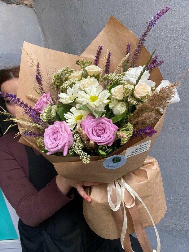 Прекрасный сервис, все очень продуманно. Сначала собирают композицию и присылают фото, после доставки опять присылают фотоотчет . Очень внимательные , советую !