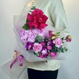 Букет розовый с гортензией, диантусом, кустовой розой и хлопком