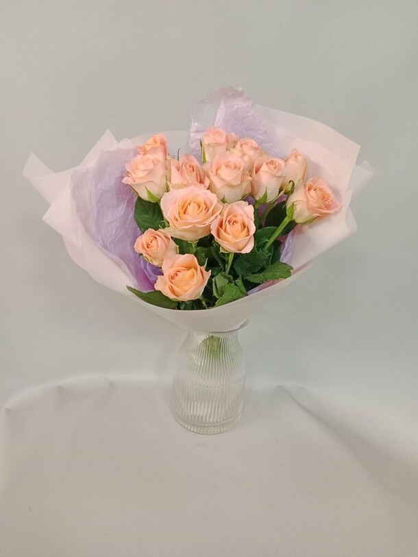 Букет один в один, как на фото. Ооочень красивый. Цветы ароматные, свежие, бутоны упругие, стебли видно что не старые.
