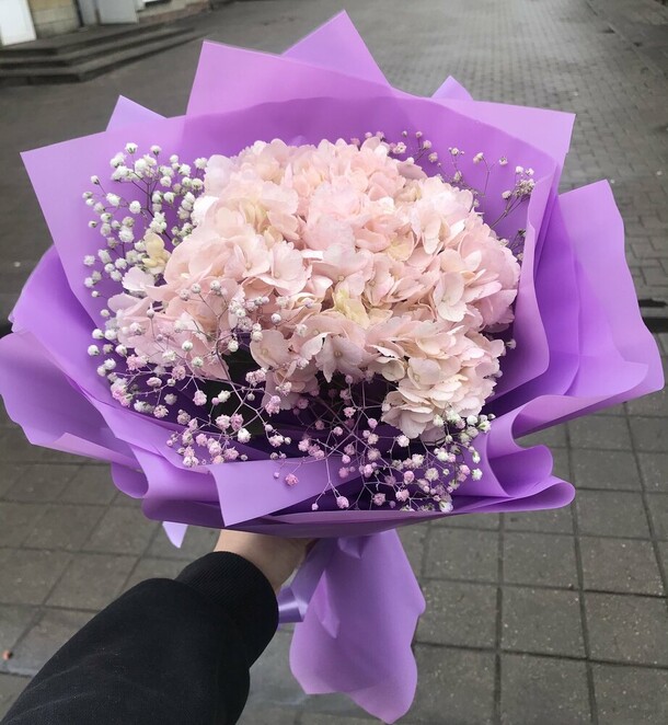 На фото букет выглядит куда больше, чем есть на самом деле. Уже на второй день гортензия представляет из себя жалкое зрелище.