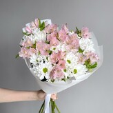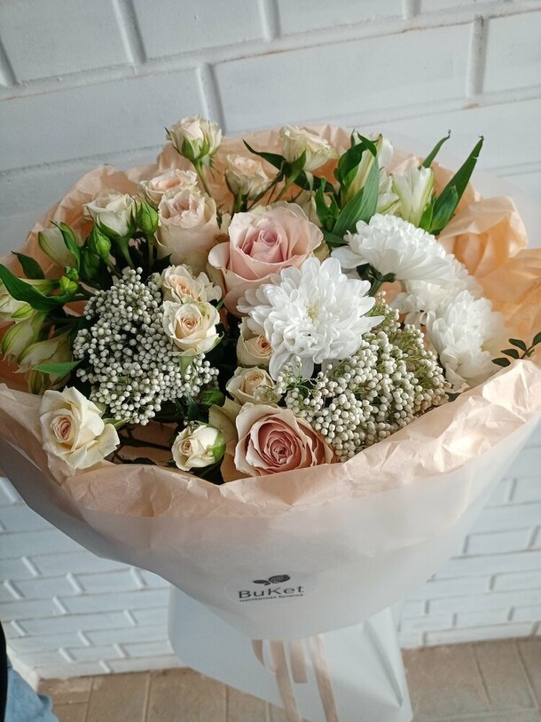 Букет красивый, но заменили озотамнус на гвоздику . Букет от этого хуже не стал, но не согласовали . Размер на фото внушительный , по факту меньше .