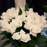 Букет из 25 белых роз, красивый букет цветов роз 50 см, букет живых цветов, Россия, арт: 1572
