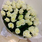 Букет 51 роза белая, большой букет из белых роз 50 см, букет живых цветов, Россия, арт: 1635