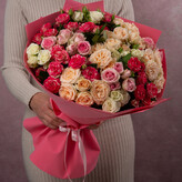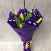 Букет из 9 яркиз разноцветных тюльпанов в матовой пленке