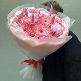 Авторский букет: хризантема кустовая, диантус и хлопок