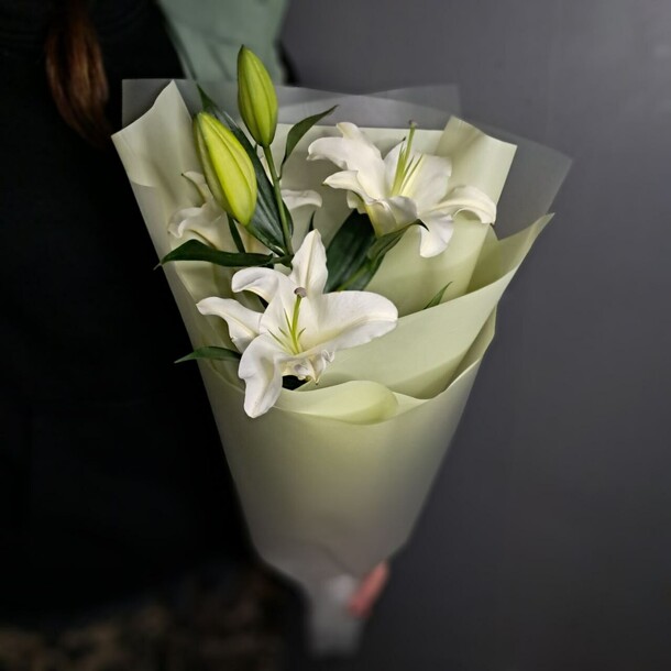 СОСТАВ: Авторская упаковка - 2, Лента - 2, Лилия - 1