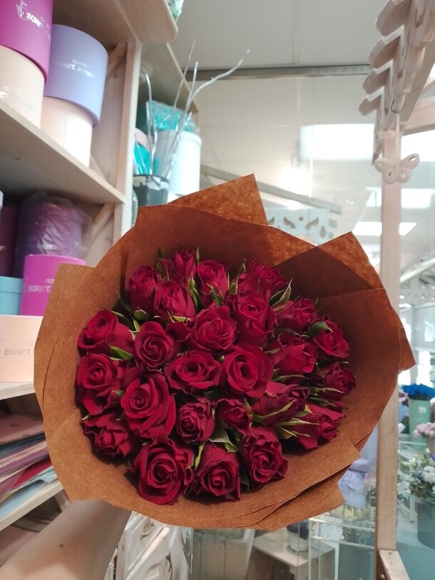 Букет из 25 красных роз в крафте кения 40 см арт. 1224757