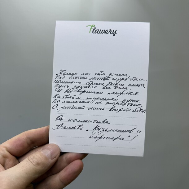 цветы просто супер как на фото! Курьер вежливо вошел в офис зная что цветы для начальнице, все очень продумано, в комплекте подкормка для цветов и водичка для перевозки. Флорист всегда на свзи
