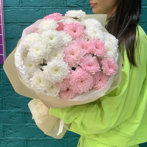 Нежный букет из 7 нежно-розовых хризантем🌺