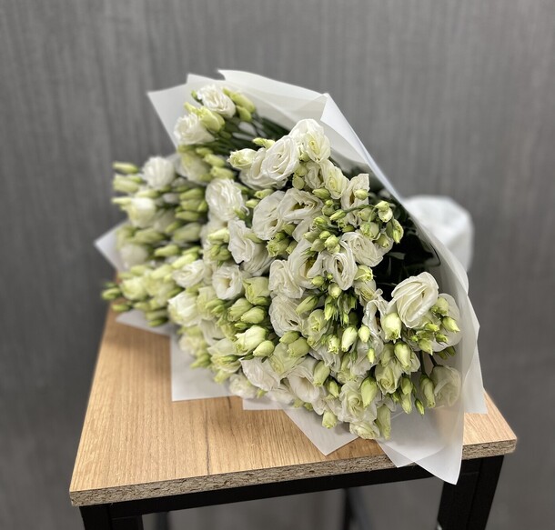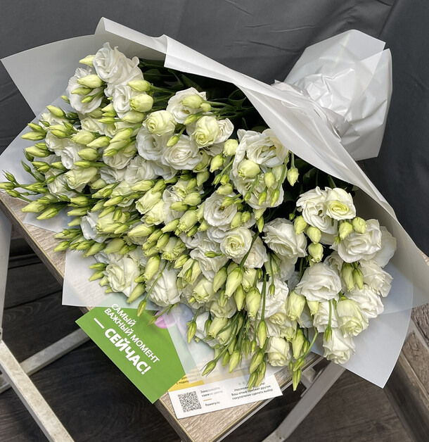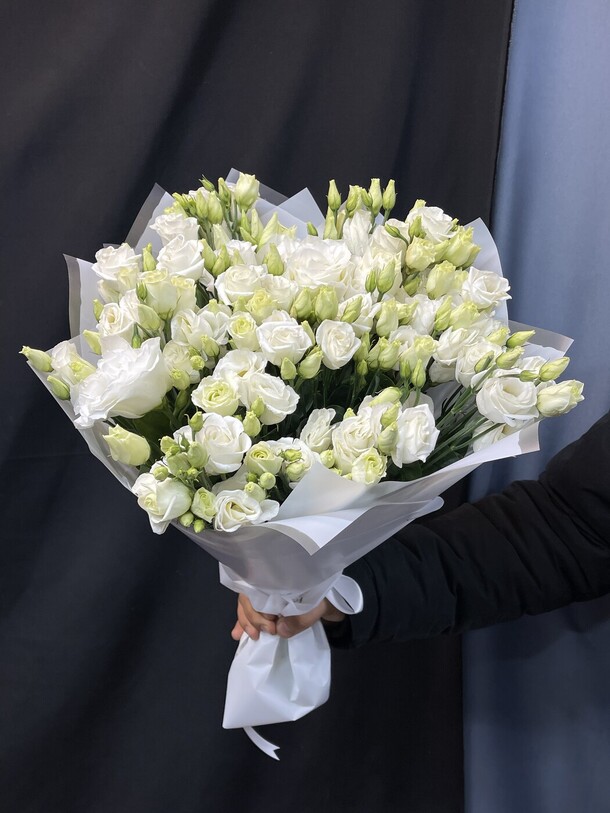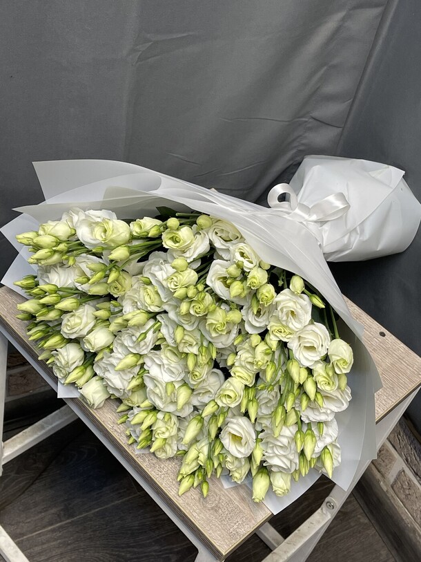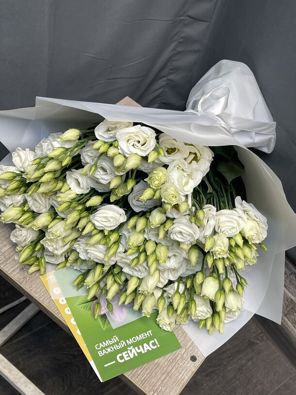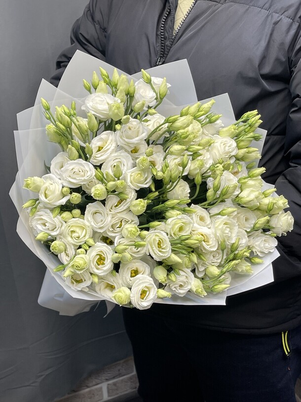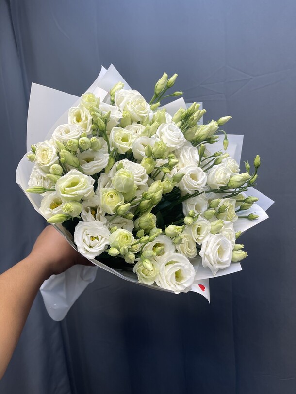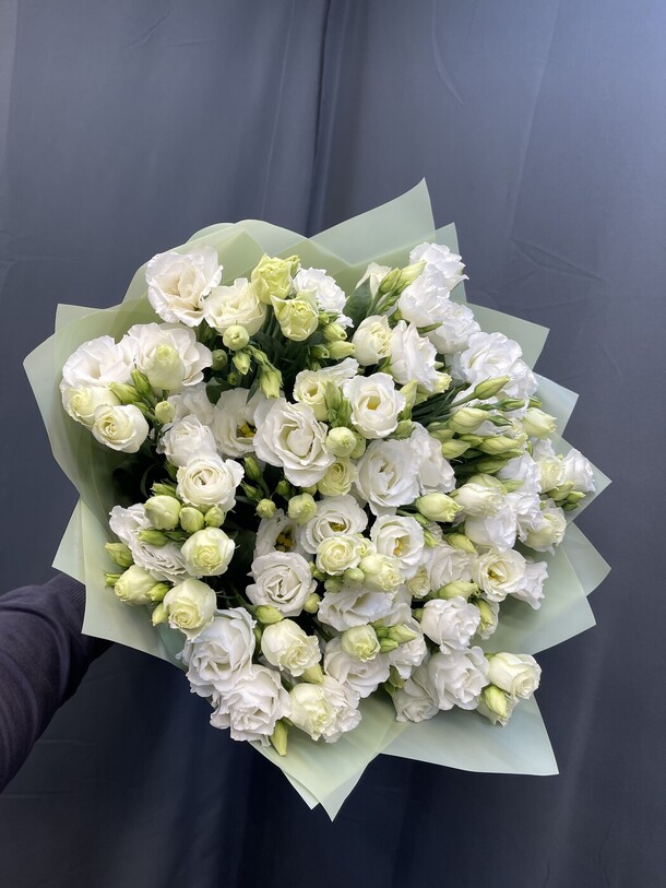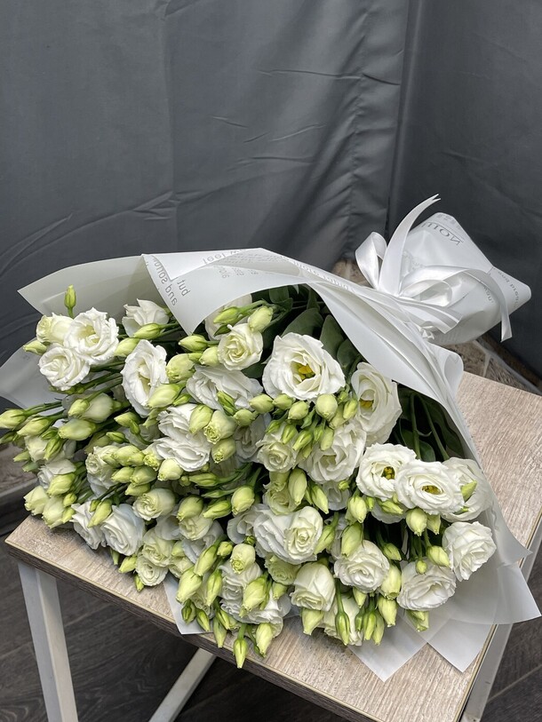 Этот букет состоит из 25 прекрасных цветов лизиантус (эустома), которые придают ему изысканный и романтичный вид. Букет украшен оформлением, атласной лентой и прилагается открытка для вашего личного поздравления или пожелания. Он подойдет для любого торжественного случая или просто чтобы порадовать близкого человека.