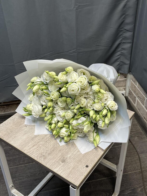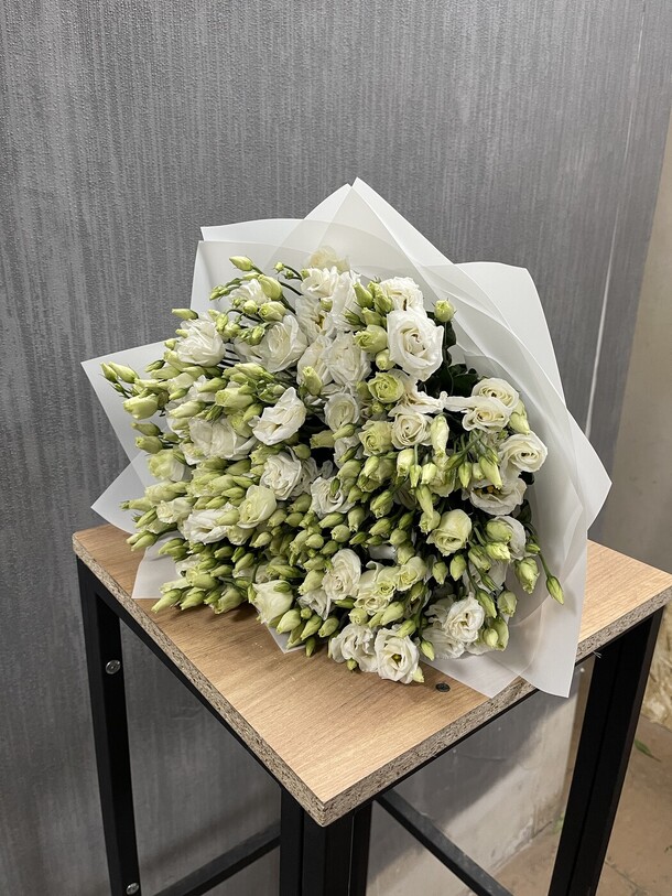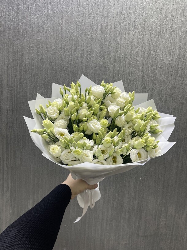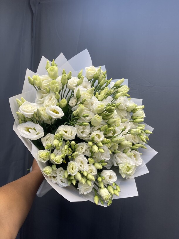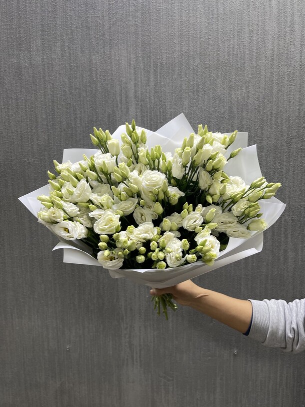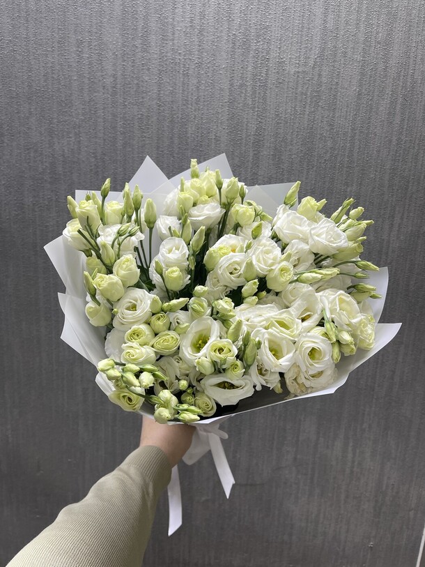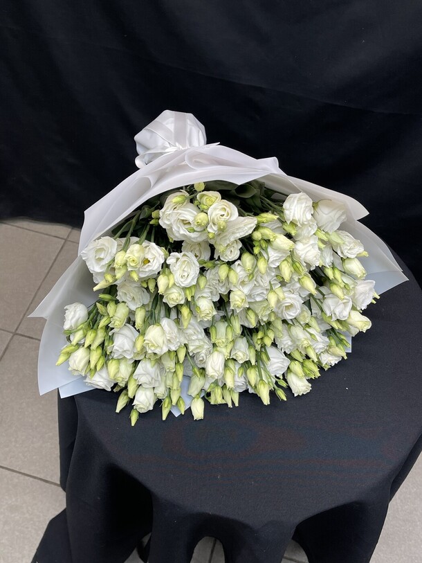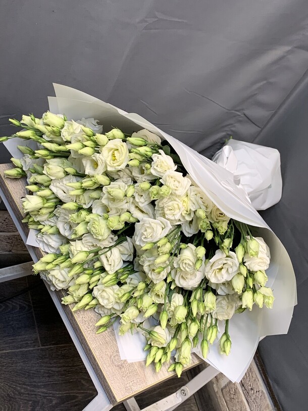 Этот букет состоит из 25 прекрасных цветов лизиантус (эустома), которые придают ему изысканный и романтичный вид. Букет украшен оформлением, атласной лентой и прилагается открытка для вашего личного поздравления или пожелания. Он подойдет для любого торжественного случая или просто чтобы порадовать близкого человека.