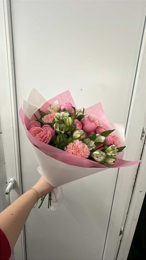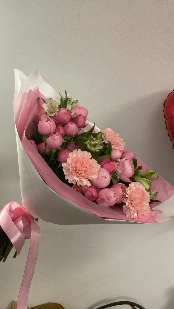 Букет из пион роз, альстромерий и диантусов станет прекрасным подарком для любого повода!