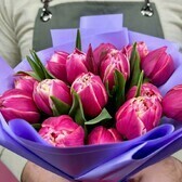 СОСТАВ: Тюльпан пионовидный - 15, Дизайнерская упаковка - 2, Лента атласная - 1