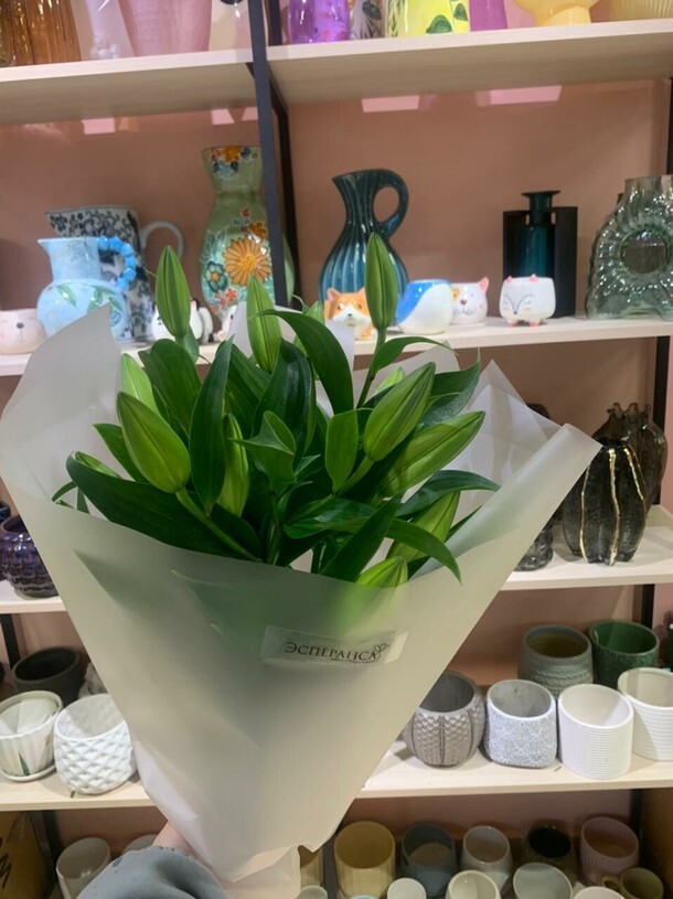 Этот изысканный букет включает в себя три прекрасные лилии, которые символизируют чистоту и изысканность. Упакованный в элегантную дизайнерскую упаковку, этот букет станет удивительным подарком для особого человека в вашей жизни. Лилии добавят нотку изысанности и красоты в любое помещение, их аромат наполнит дом уютом и свежестью.