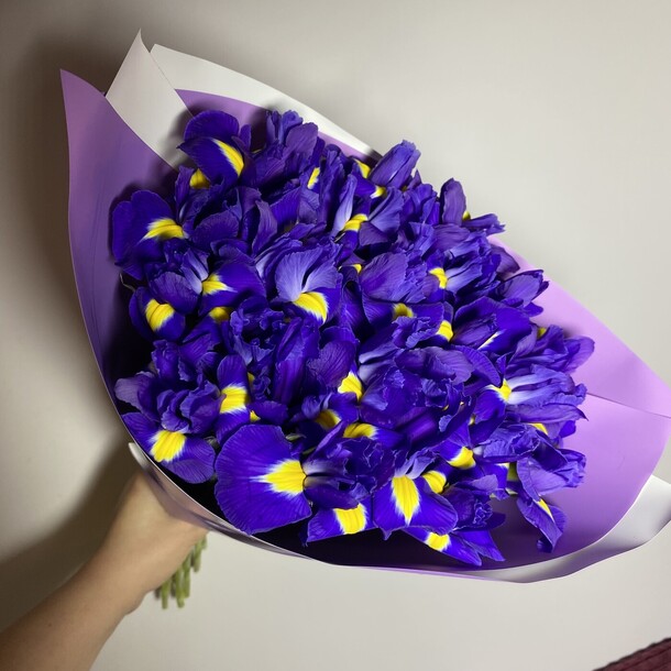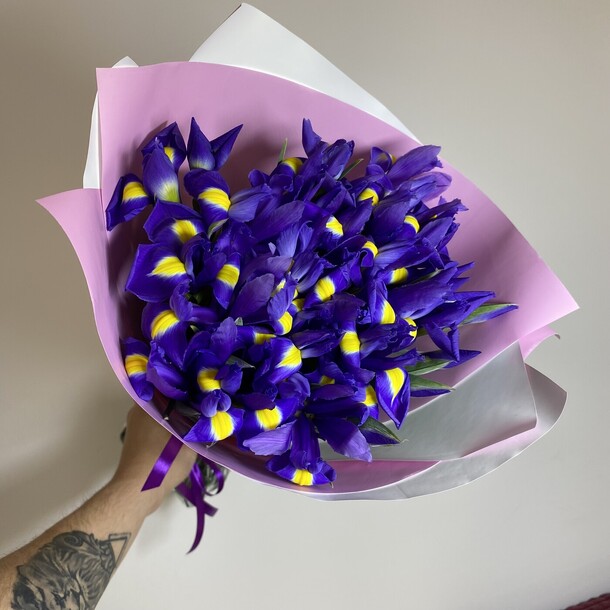 Этот удивительно красивый букет состоит из 25 прекрасных ирисов "блю меджик", которые напоминают волшебные сказки. Они украшены атласной лентой и упакованы в оригинальную авторскую упаковку. Этот букет прекрасно подойдет для подарка вашим близким или любимому человеку, чтобы подчеркнуть их особенность и неповторимость.