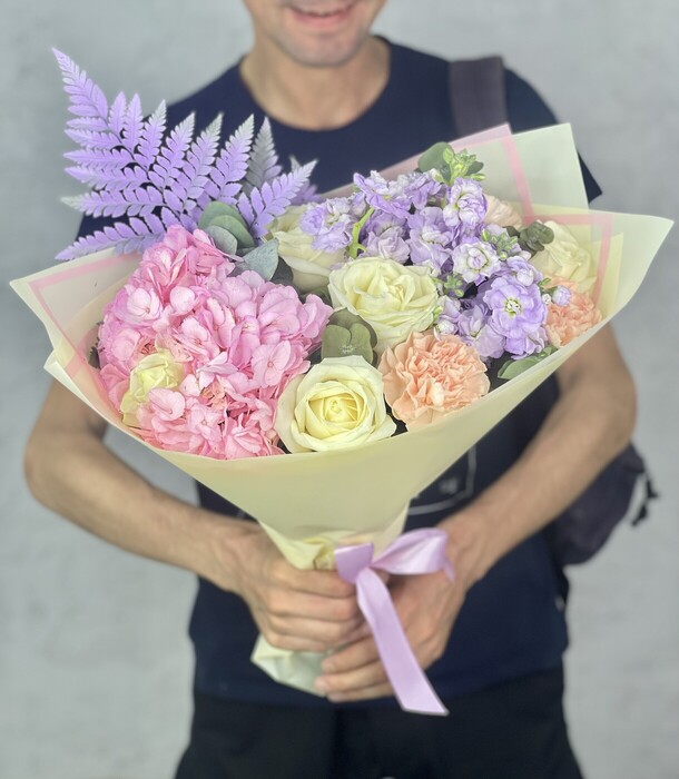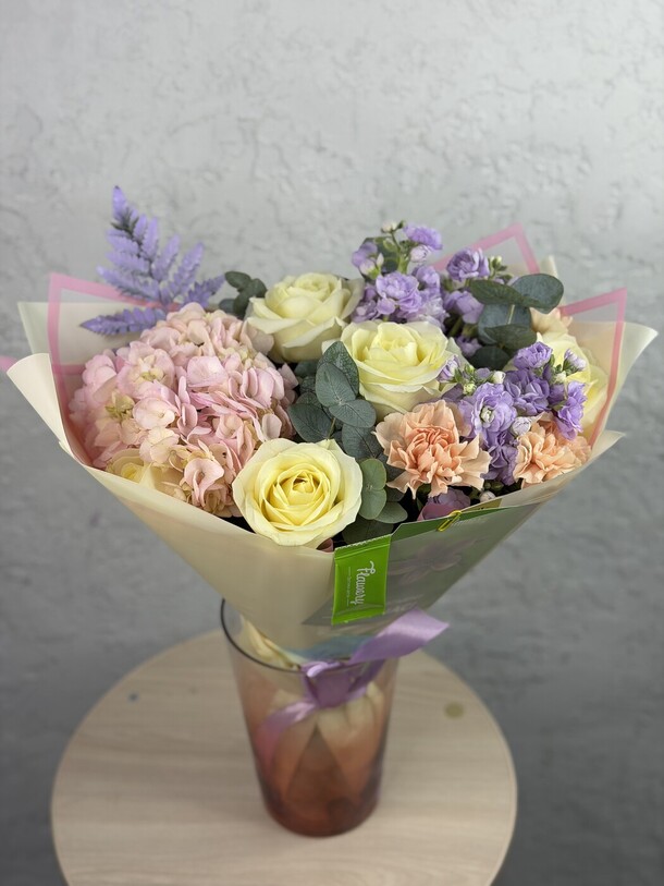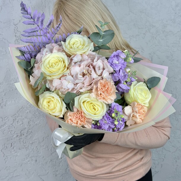 Больше спасибо за красивый букет. Доставили вовремя, как и обещали. Название букета соответствует на все 100%. Жена так и сказала как увидела: «какая нежность». Спасибо за прекрасное начало прекрасного дня!