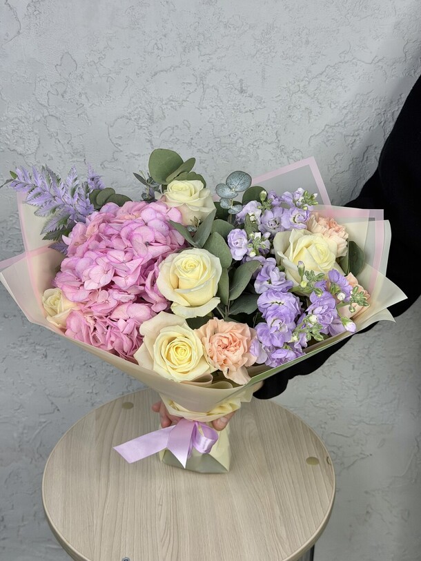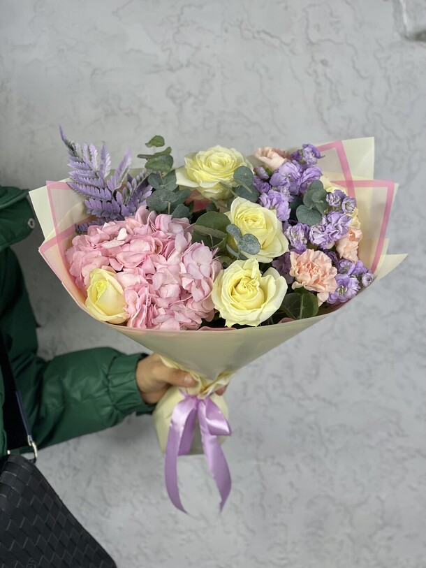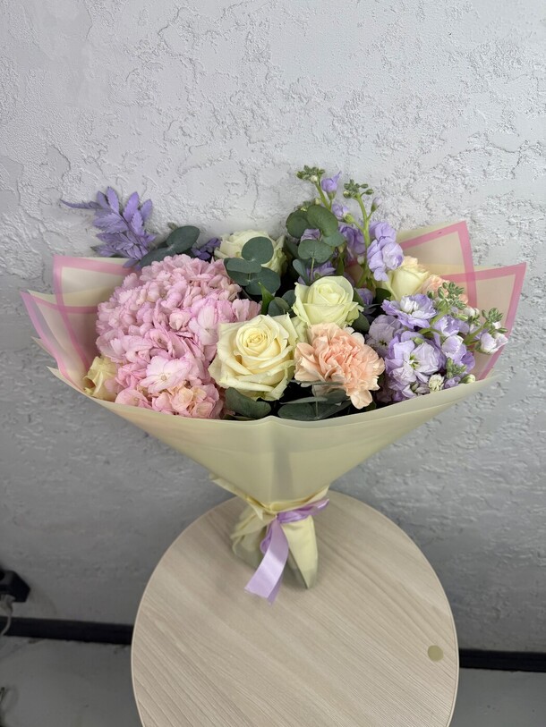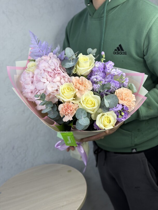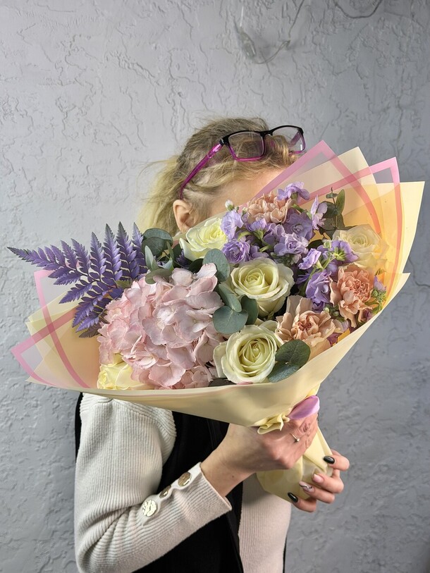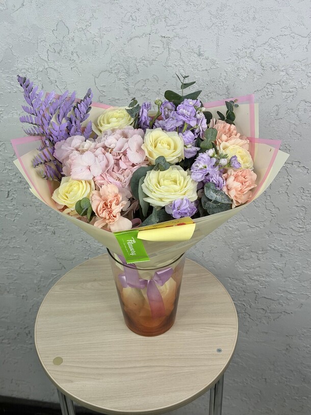 Отличный букет, прекрасное оформление. Имениннице все понравилось! Большое спасибо флористам!