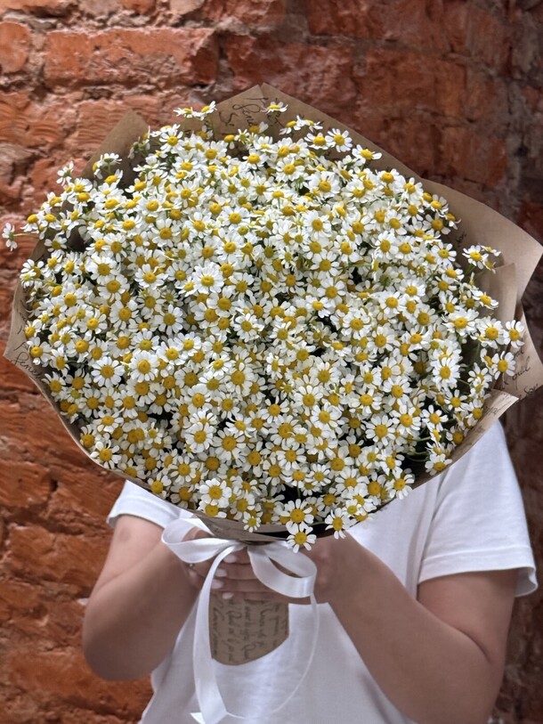 Букет из 25 кустовых ромашек, символизирующих чистоту и искренность чувств. Нежные цветы, упакованные в крафтовую бумагу, создают атмосферу уюта и естественности. Этот букет станет идеальным подарком для выражения теплых эмоций и восхищения адресату.