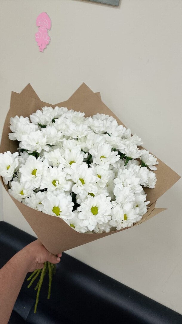 СОСТАВ: Хризантема кустовая - 9, Крафт - 1, Лента - 1