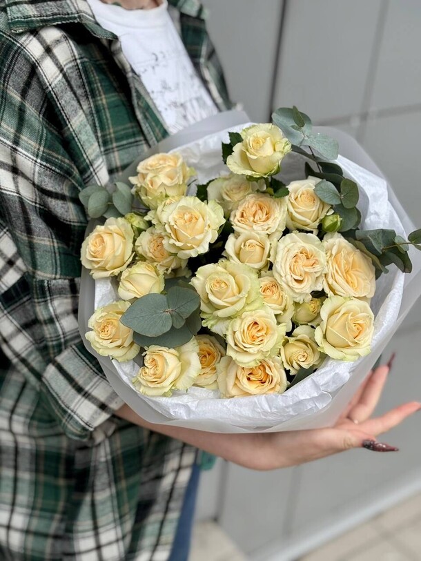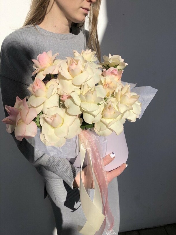 Букет очень красивый, нежный, но к сожалению, через 1.5 дня розы уже все подвяли….