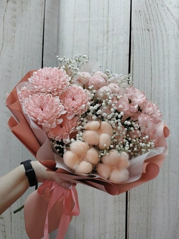 Много лет уже пользуюсь заказом букетов на этом ресурсе, но такого хамского отношения не разу не было. Букет был заказан за НЕДЕЛЮ до доставки, на сообщения магазин не отвечает, ответили уже когда очередной раз написала за день до доставки, по номеру телефона тоже не смогла дозвониться. Фото букета сбросили за 1.5 часа до доставки, ПОЛНОЕ не соответствие, на фото магазина букет выполнен весь в нежно розовой гамме как хризантемы так и хлопок, а сделали полный колхоз. Хлопок грязно- какого цвета хризантемы с белой проплешиной, когда я все таки дозвонилась до магазина, молодой человек мне ответил, что букет соответствует тех плану во ВСЕМ, и переделывать не будут, если не устраивает, то отказываетесь. Это что такое, если ьукет за 2000 руб значит нужно делать на отвали. Я за неделю заказ сделала, если у вас нет цветов такого цвета, предупредите , либо откажусь либо выбрала бы другой, но нет в общем сделали на отвали. букет слева, который я заказывала нежный розовый, хризантема шапочкой, а справа то что сделали просто ужас, разница заметна?! Этот магазин MOSSFlowers однозначно не советую!!!!!!