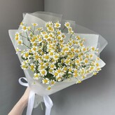 цветы были намного меньше, чем в примере на фото. Половина была уже вялая. С одной стороны цветы были намного ниже, тем самым испортив общий вид букета