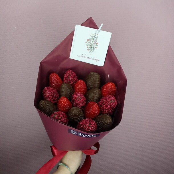 Заказ выполнен в срок, все отлично! Букет шикарный и вкусный!