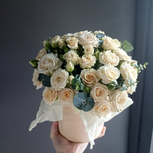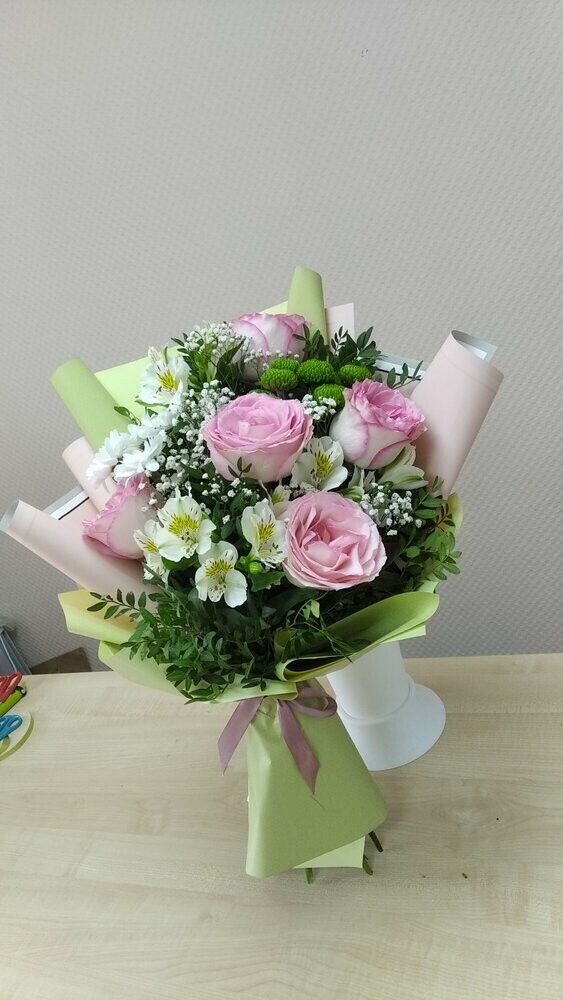 на фото очень пышный букет, в жизни оочень миниатюрный, и выглядит не так как на фото