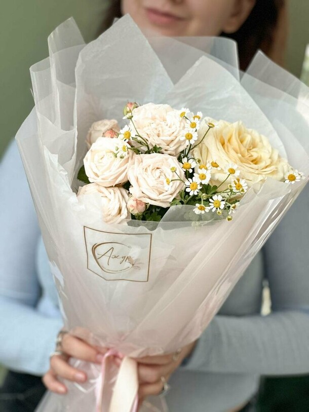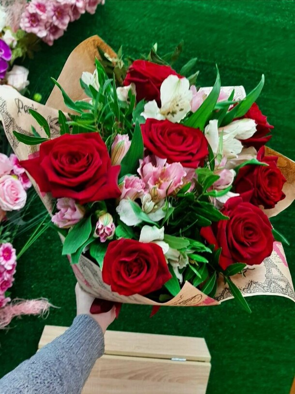 Цветы привезли смешанные - одна свежая ветка, две старые. Одна роза сломана. Оформление после доставки, видимо, пострадало. Бумага не держала форму. Не понравилось оправдание магазина про жару и то, что цветы ведут себя непредсказуемо. Свежие цветы - это свежие цветы. А тут как-то не повезло мне, получается. На юбилей заказала. А ощущение, что дня три к меня стояли до этого 🥲