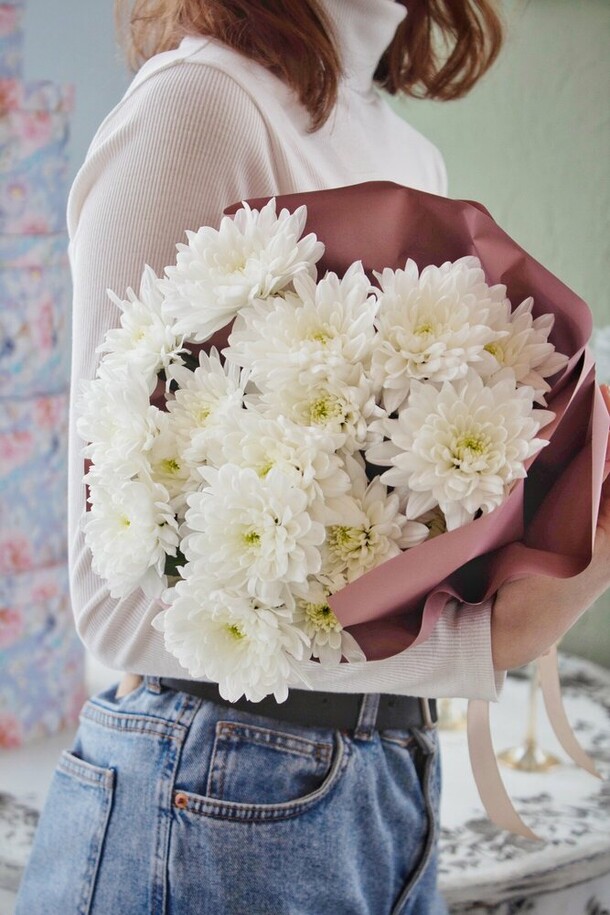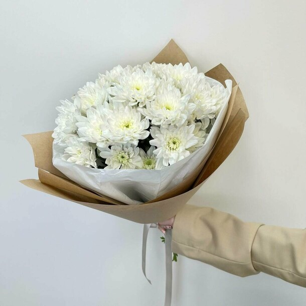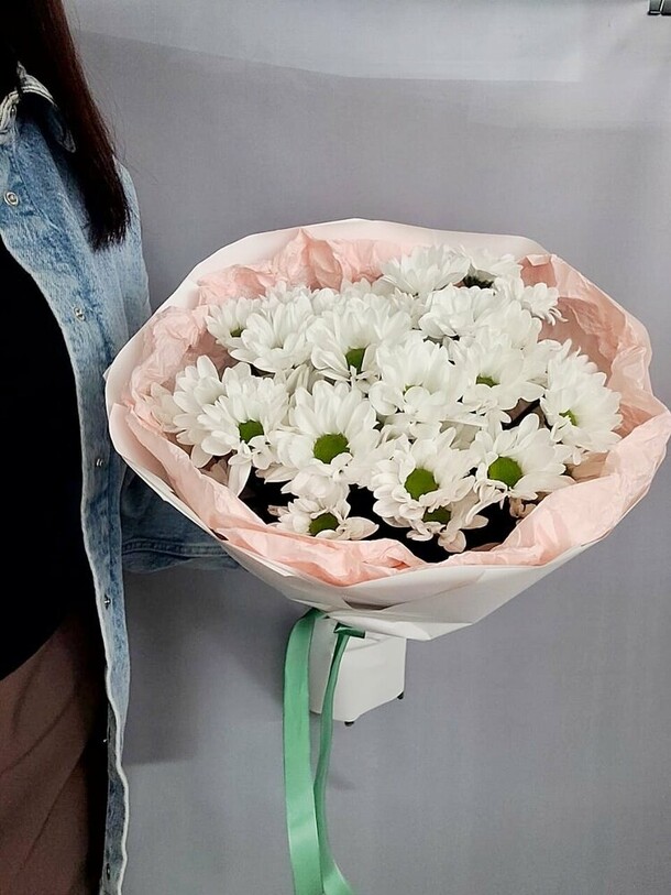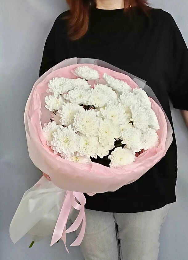 цветы были намного меньше, чем в примере на фото. Половина была уже вялая. С одной стороны цветы были намного ниже, тем самым испортив общий вид букета
