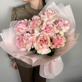 Авторский букет из пионовидных роз, эустомы и диантусов