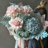 Букет розово-голубой с французскими розами