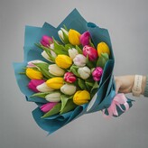 Букет живых цветов - 25 тюльпанов микс, размер м, высота 40 см, голландия | турбофлора, арт: 7101