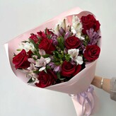 Сборный букет цветов на праздник из 10 альстромерии и 3 гипсофил, арт: 1796