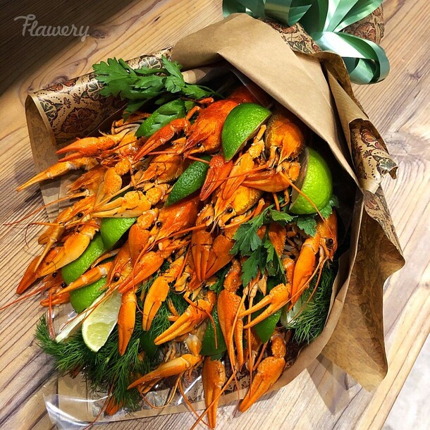 Заказывала мужской букет из раков папе сюрпризом на день рождения в Северск. Букет шикарен,тяжелый :) раки разного размера, свежие. Оформлено и доставлено все быстро и в согласованное время. Спасибо!