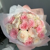 Букет живых цветов из 15 белых роз под ленту, эквадор 50 см | пять цветов - быстрая доставка, арт: 1442