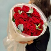 Букет из красных роз 45 шт, букет красивых роз 50 см, букет живых цветов, Россия, арт: 1679-1