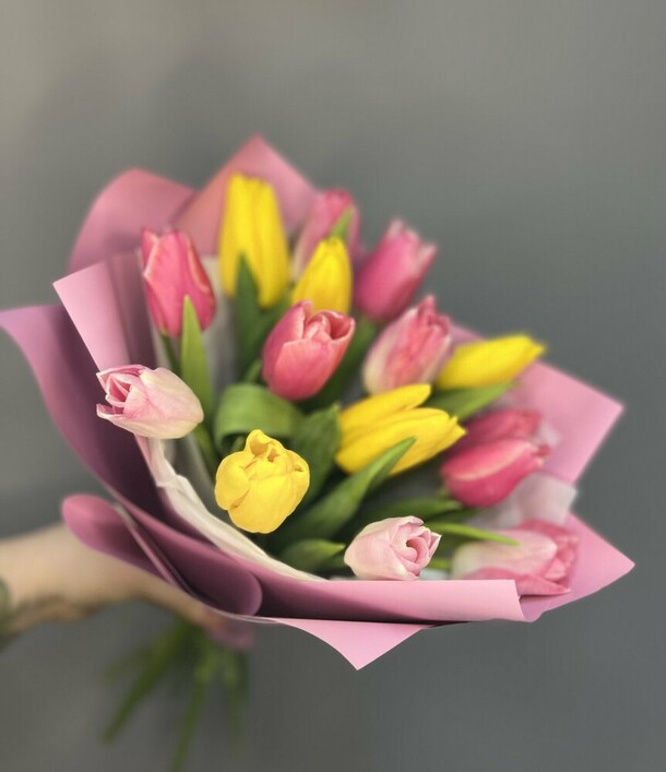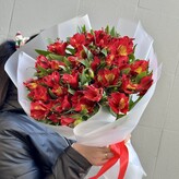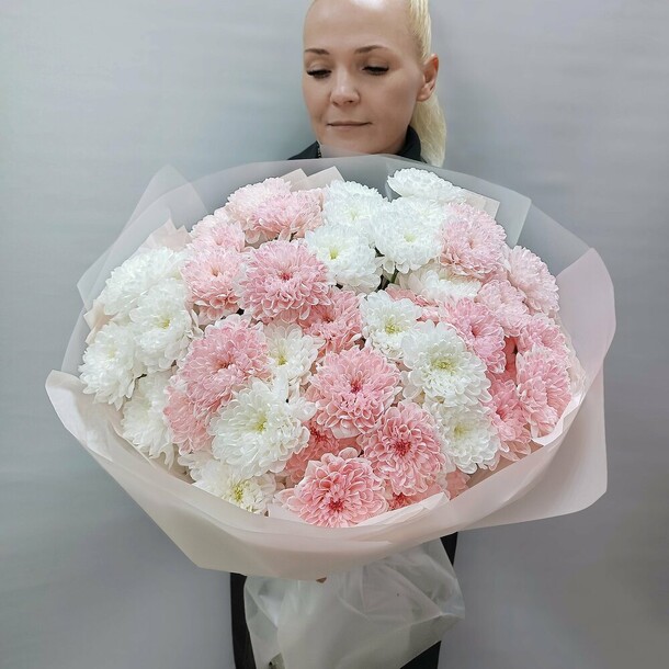 Свежие цветы, как на фото, быстрая доставка, вложили записку по просьбе, спасибо! Цена и качество соответствует, рекомендую! На фото букет уже без упаковки :)