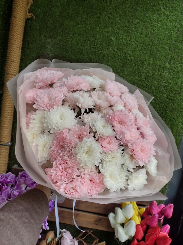 Очень красивые цветочки, попросила в чатике привезти пораньше, всё доставили на 5 звездочек, буду заказывать снова
