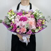Свежие цветы, как на фото, быстрая доставка, вложили записку по просьбе, спасибо! Цена и качество соответствует, рекомендую! На фото букет уже без упаковки :)