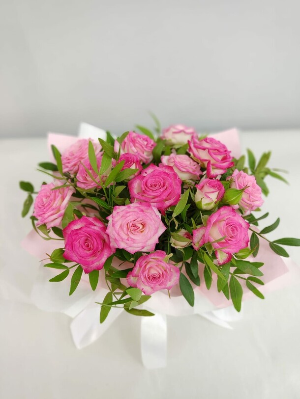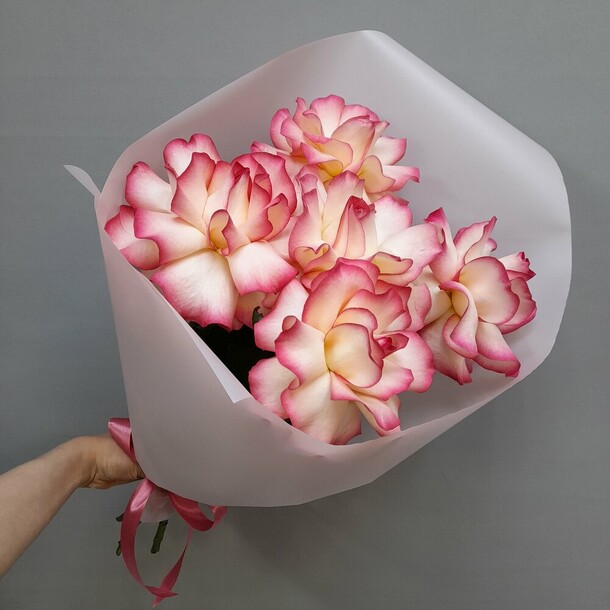 Букет вообще не соответствует тому, что представлен на сайте. Цветы оказались не свежими, хотя флорист в чате утверждала, что они свежие и чтоб я не волновалась. Цена слишком завышена, три розы в целлофане не стоят 2100 руб. Разочарование!