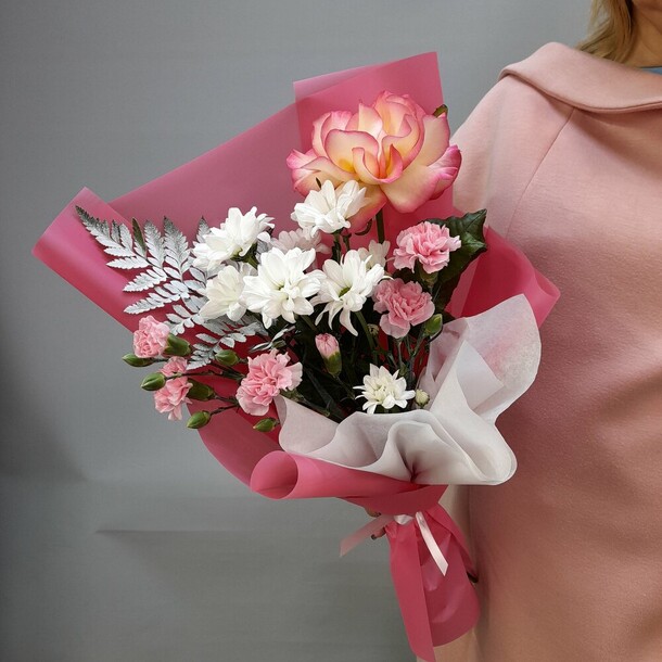 Букет соответсвует картинке, супруге очень понравился. Доставка чётко ко времени. Спасибо!