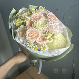 Хороший букет, очень красивый, цена приятная. Но меньше, чем через сутки, на несколько лепестков покоричневили и пожухли. За цветами ухаживали, обрезали, меняли воду.