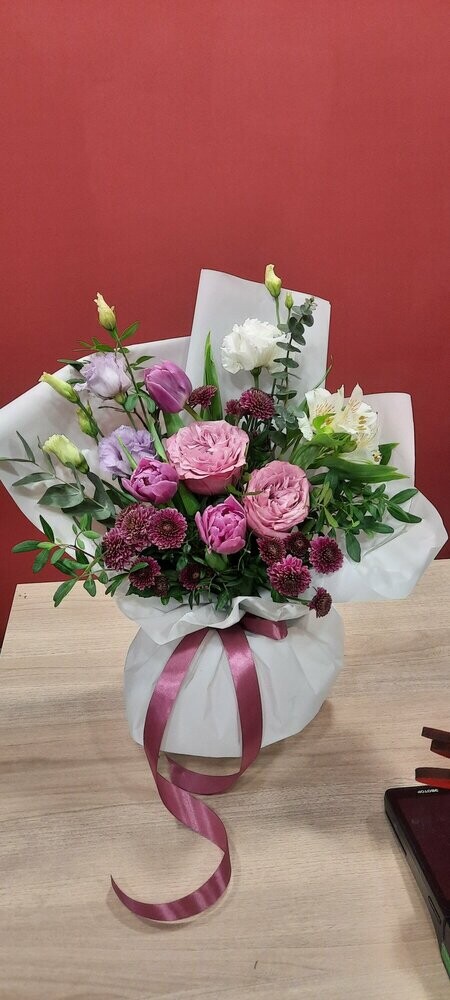 Прекрасный букет, лучше, чем на картинке, который вовремя доставили. Оперативное общение в чате. Спасибо!