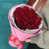 Букет из 25 красных роз, красивый букет цветов 50 см, букет живых цветов, Россия, арт: 1616