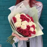 Букет 25 красных и белых роз