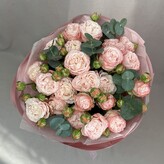 Выбрала из каталога, понравился букет, оплатила, в итоге собрали совсем другой, причем в чате я его ещё одобрила, так как показался неплохим, хоть и выглядел иначе. Сами цветы свежие, вопросов нет, доставка быстрая, спасибо. Удобный сервис, если нужен букет быстро, но больше не буду заказывать так
