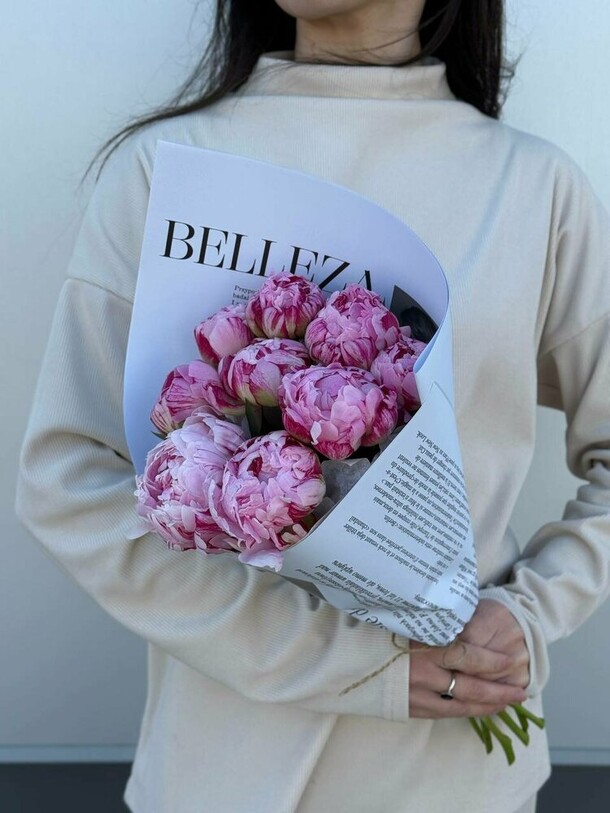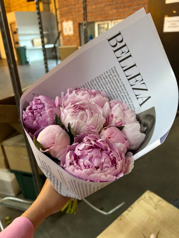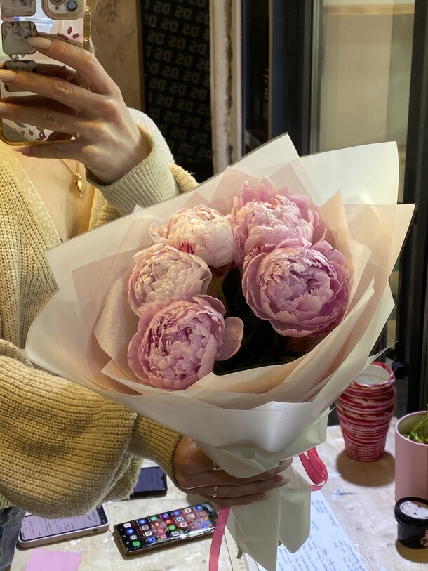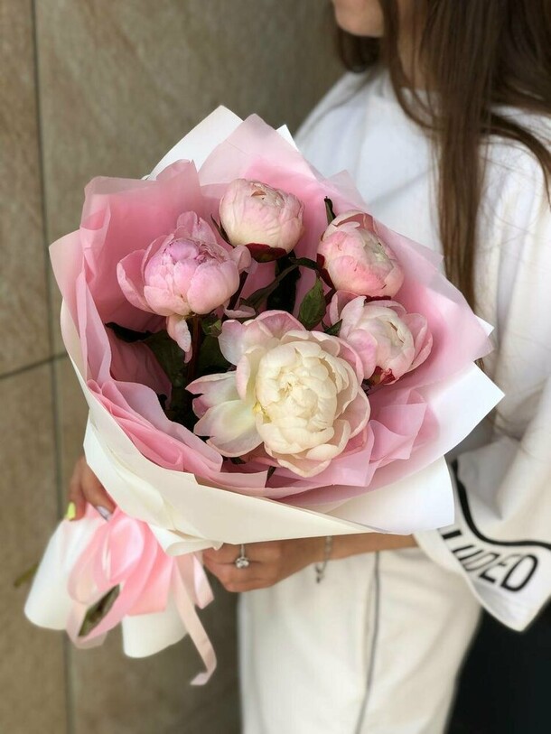 Цветы уже уставшие ( выглядят не так как на фото которое мне прислали в чате ( ещё одно замечание то что в чате мне прислалали фото только одного букета с пионами) цветы были горячие , катались они в машине очень много ( потому что не правильно были отправлены . у меня время было 18:30-19:30 а не 17:30 когда курьер приехал ко мне . спасибо у вас я больше заказывать не буду