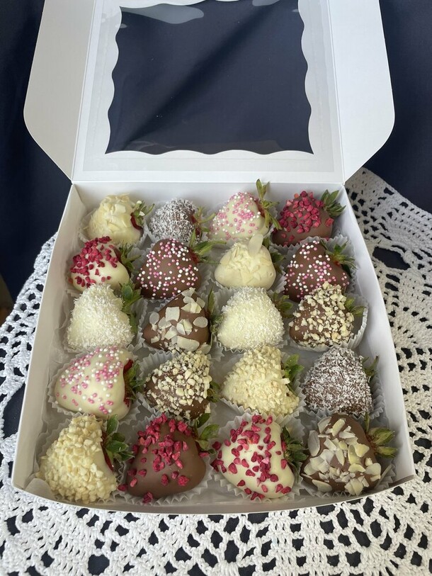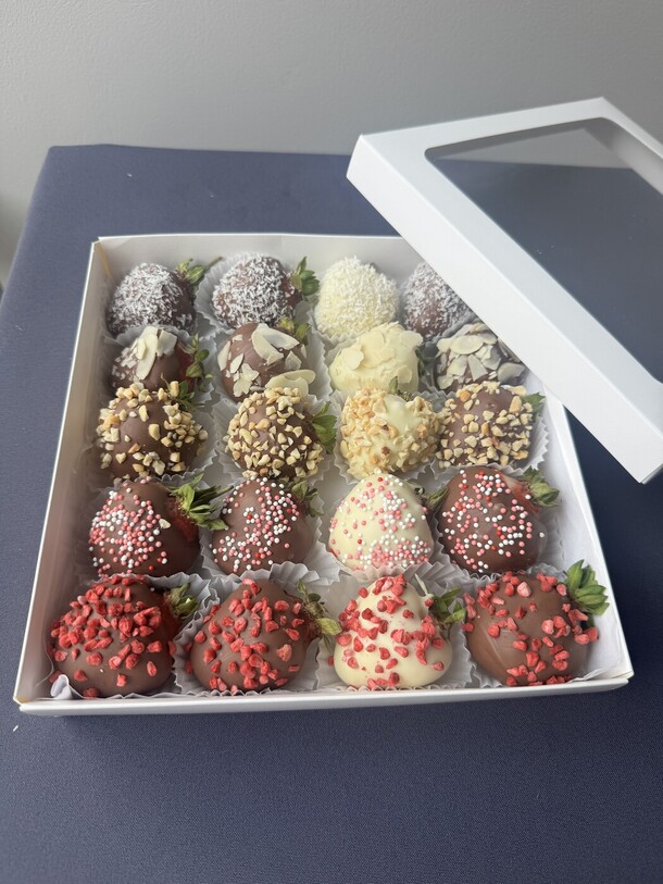 Заказывали самовывоз. Все выполнено в срок. Имеется возможность решать вопросы в чате с продавцом. Клубника, шоколад - все понравилось! Рекомендую к покупке.
