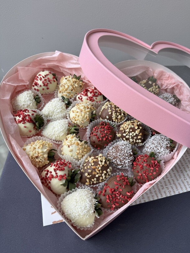 Все очень красиво и полностью соответствует описанию, упаковали клубнику в очень красивую коробочку😍